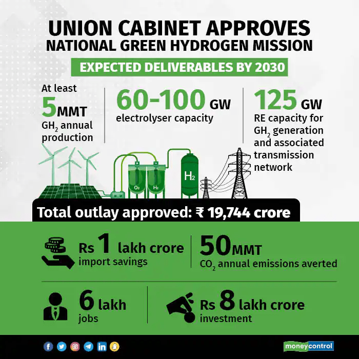 • National Green Hydrogen Mission: India’s National Green Hydrogen Mission is a government initiative aimed at promoting the use of hydrogen as a clean and renewable energy source in the country, and it has just received INR 19,700 crore rupees as a part of the national budget 2023. This is to help facilitate the transition of the economy to low carbon intensity and reduce dependence on fossil fuel imports. This mission has the potential to transform the energy sector in India, reducing the country’s dependence on fossil fuels and contributing to a cleaner and more sustainable future.